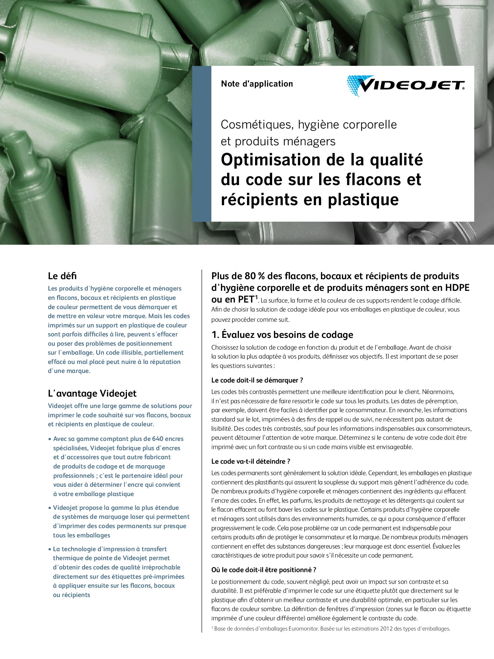 Plus de 80 % des flacons, bocaux et récipients de produits d’hygiène corporelle et de produits ménagers sont en HDPE ou en PET1.