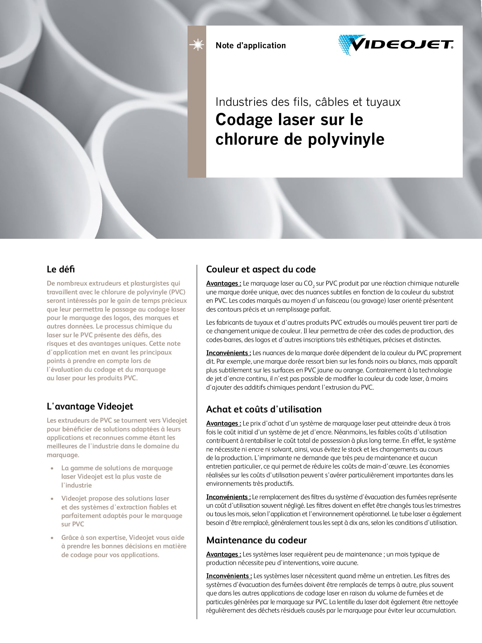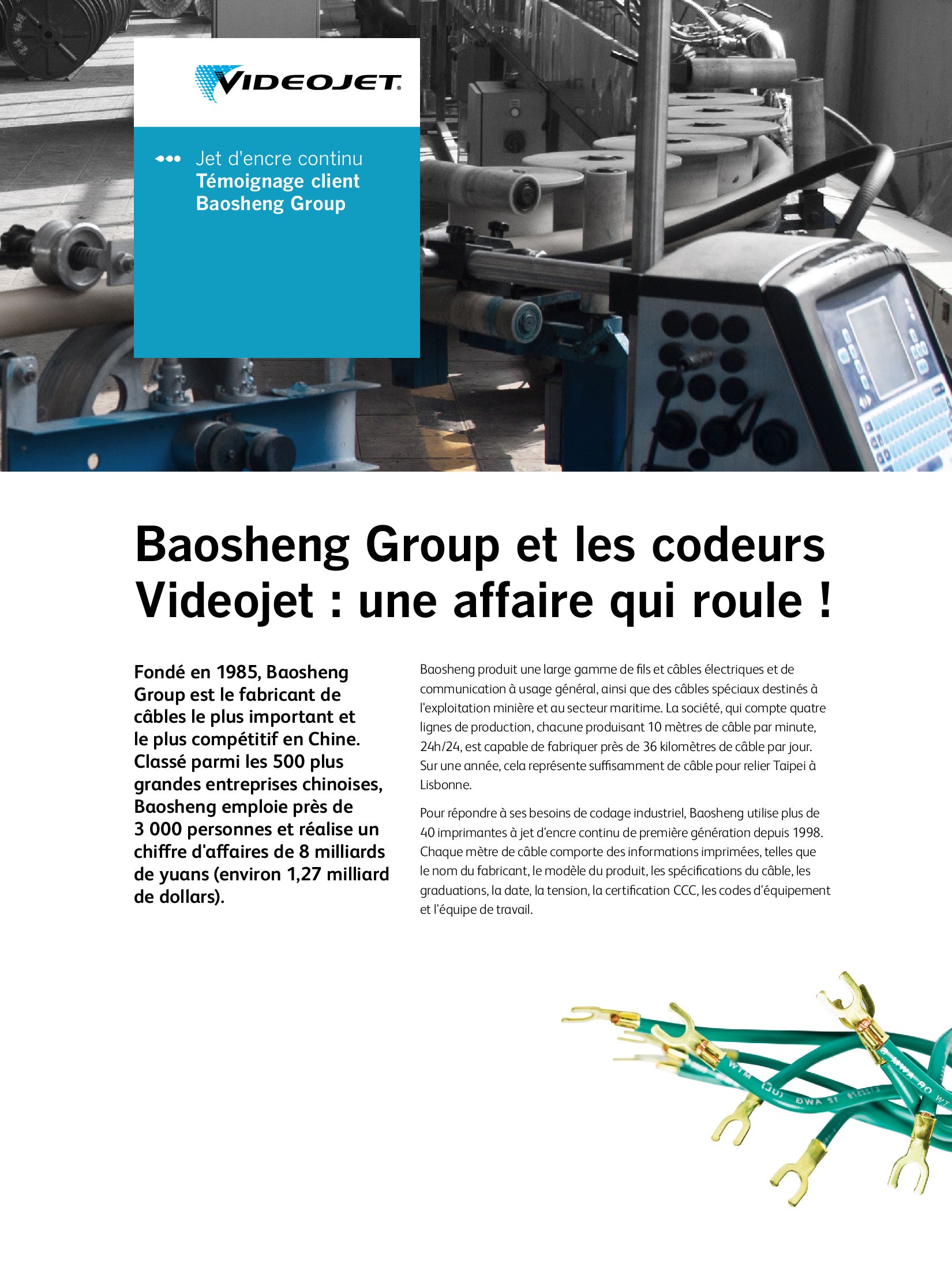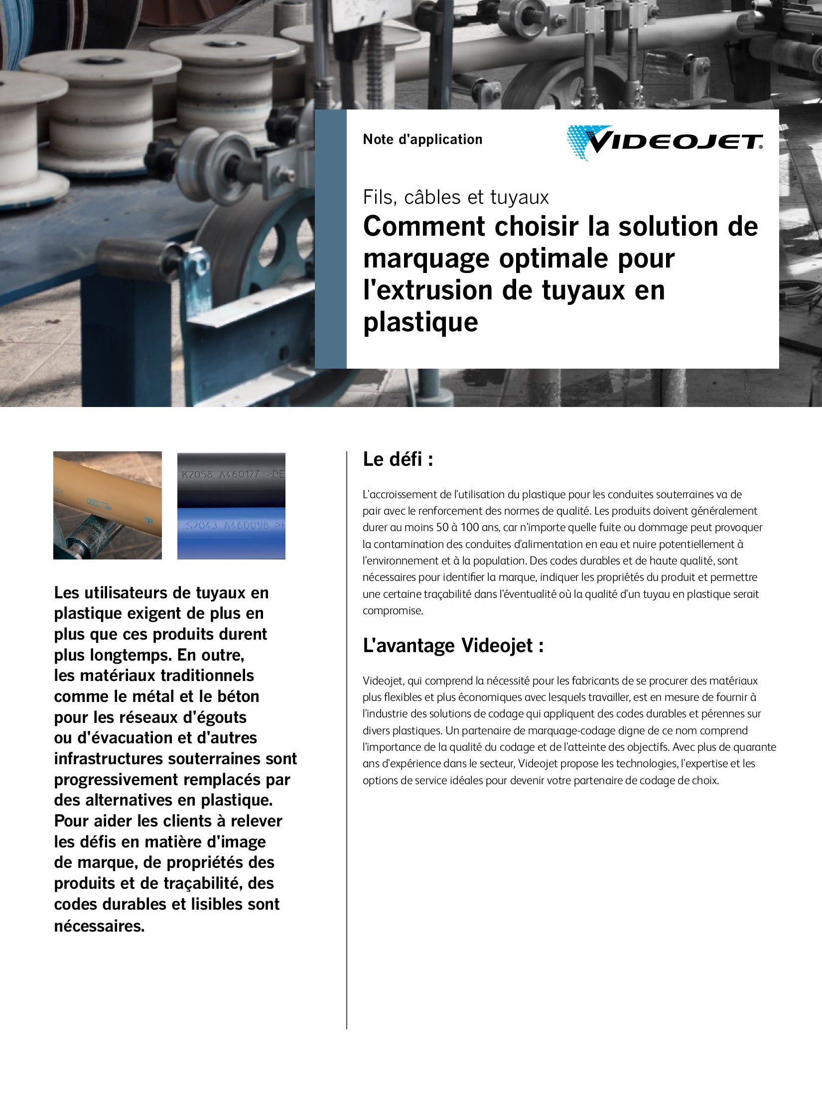 Solution d’application Videojet pour l’extrusion des câbles, fils et tuyaux