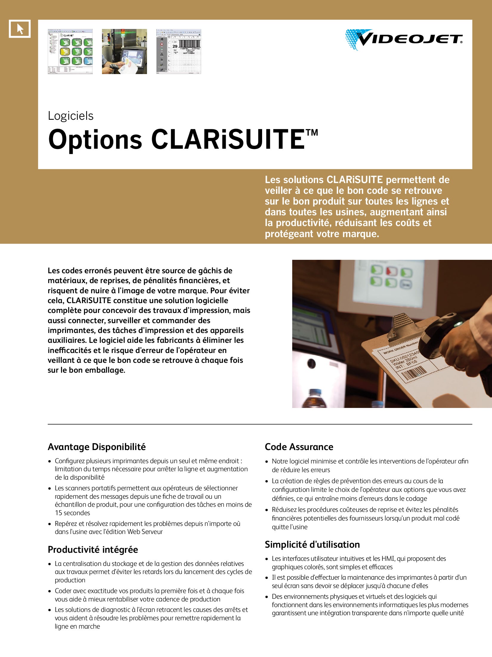 CLARiSUITE Solution de Code Assurance Videojet
