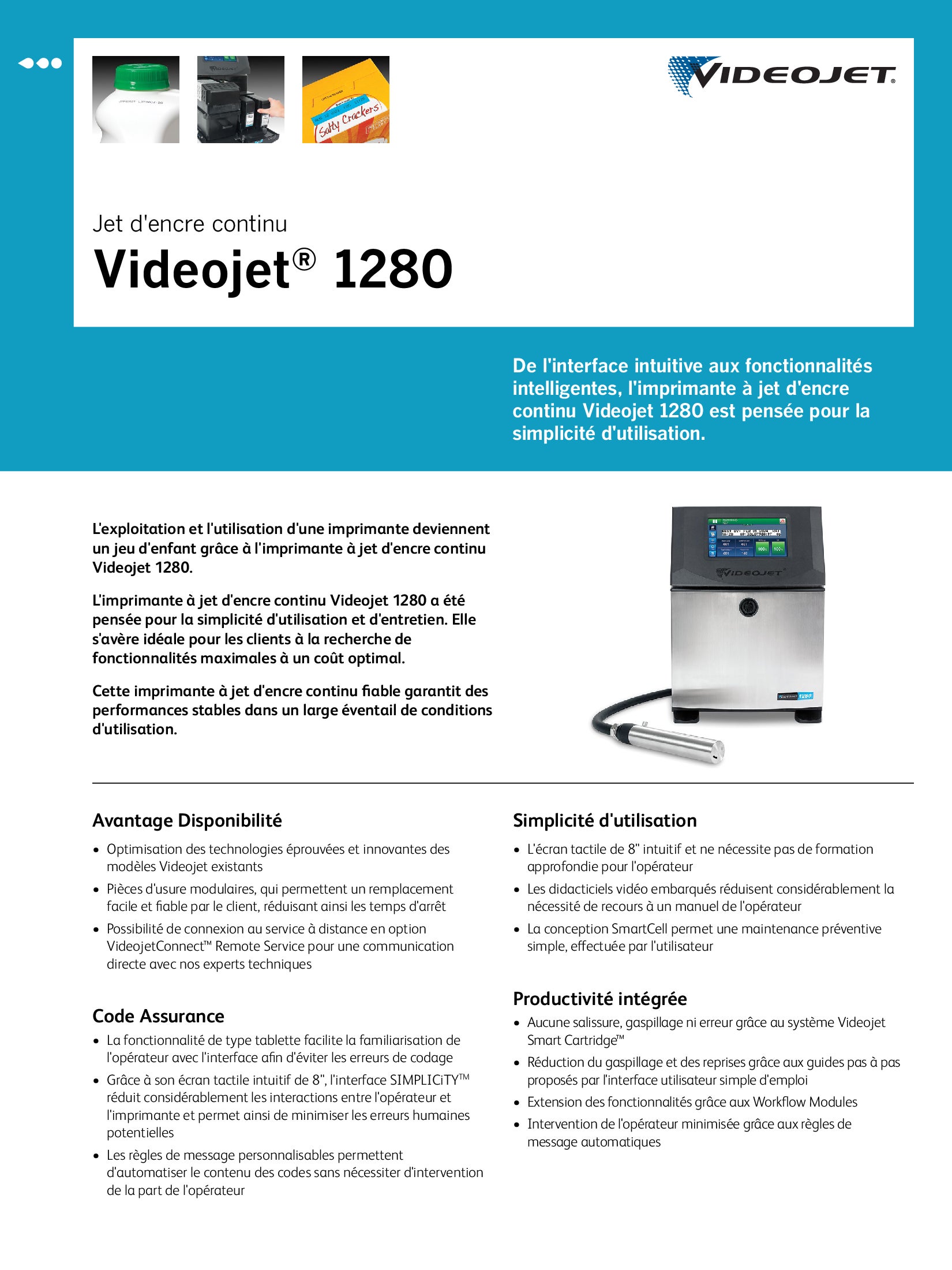 Videojet réinvente la simplicité avec l’imprimante à jet d’encre continu Videojet 1280. Son interface intuitive et ses fonctionnalités intelligentes en font un outil simple à utiliser pour tous les opérateurs.