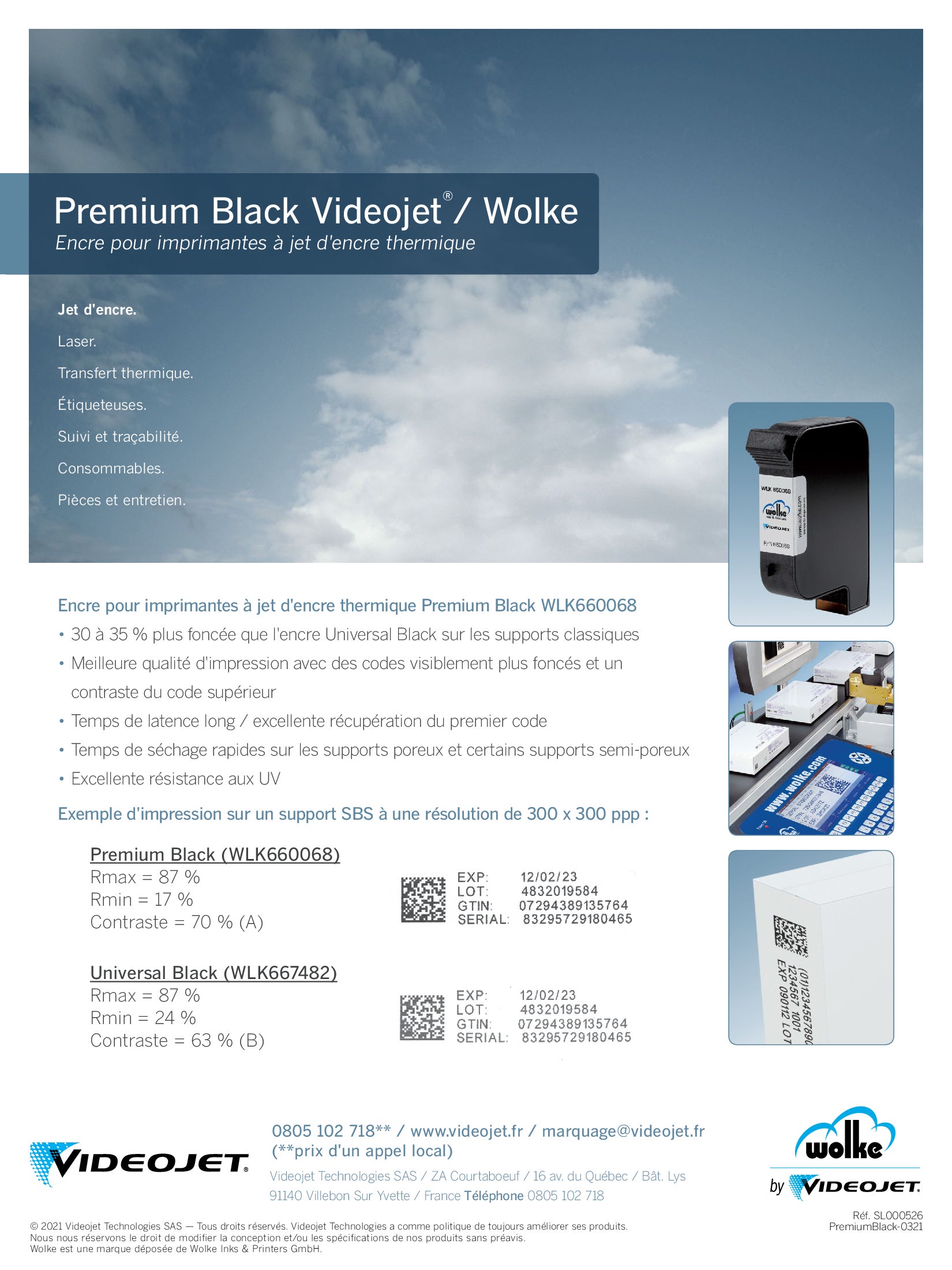 Encre pour imprimantes à jet d’encre thermique Premium Black Videojet/Wolke