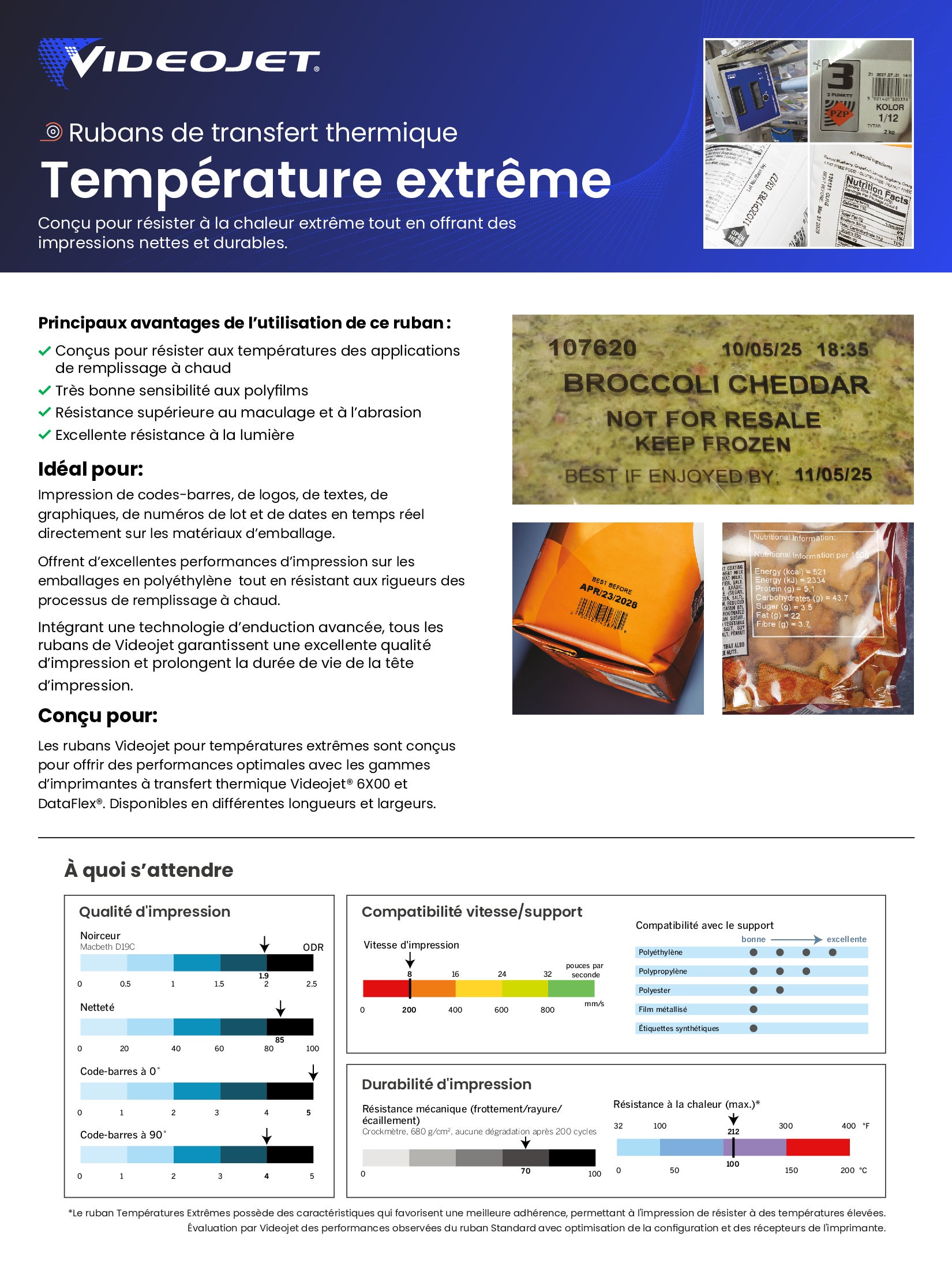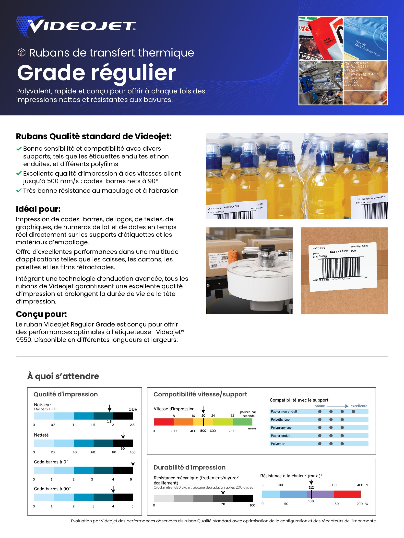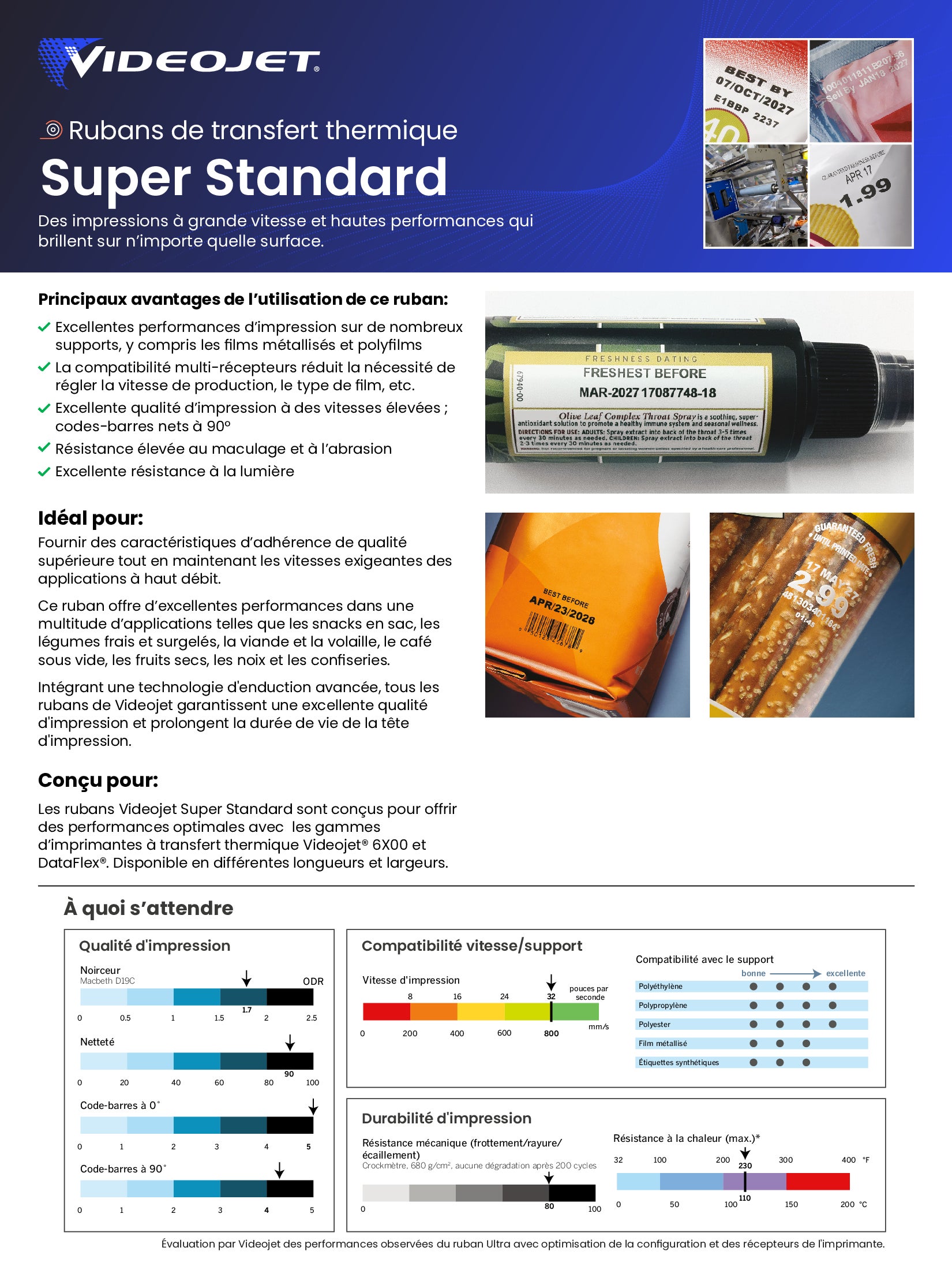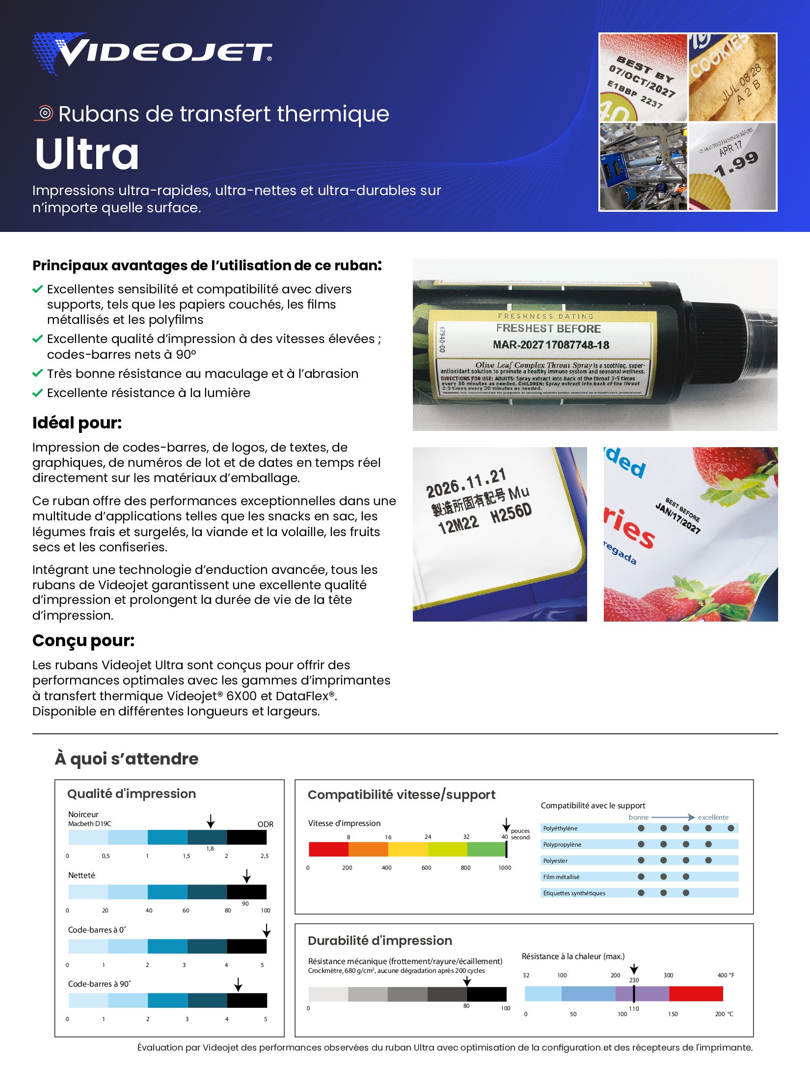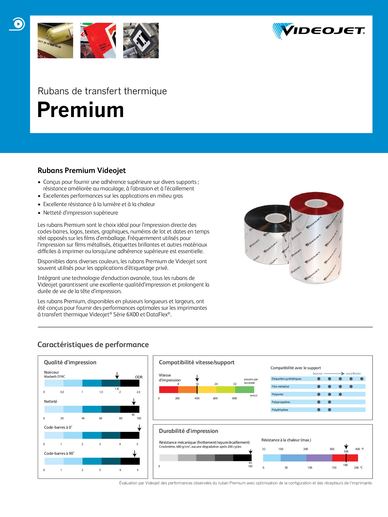 | Ruban ULTRA Videojet | Ruban standard Videojet | Ruban super standard Videojet | Ruban Premium Videojet | Ruban Temp. extrêmes Videojet | |